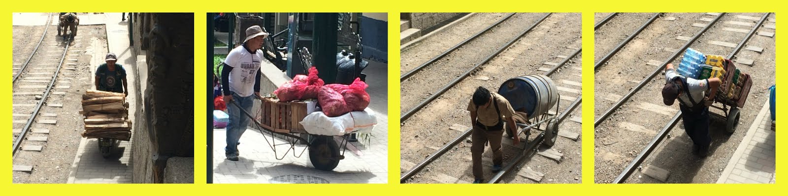 We stayed in Aguas Calientes at the base of Machu Picchu. It is a very small town in existence solely for the tourists, and there are no taxis or trucks. In fact, there is no road to Aguas Calientes. When the train arrives with supplies, hired hands have to transport everything by wheelbarrow up the hill . . . everything!